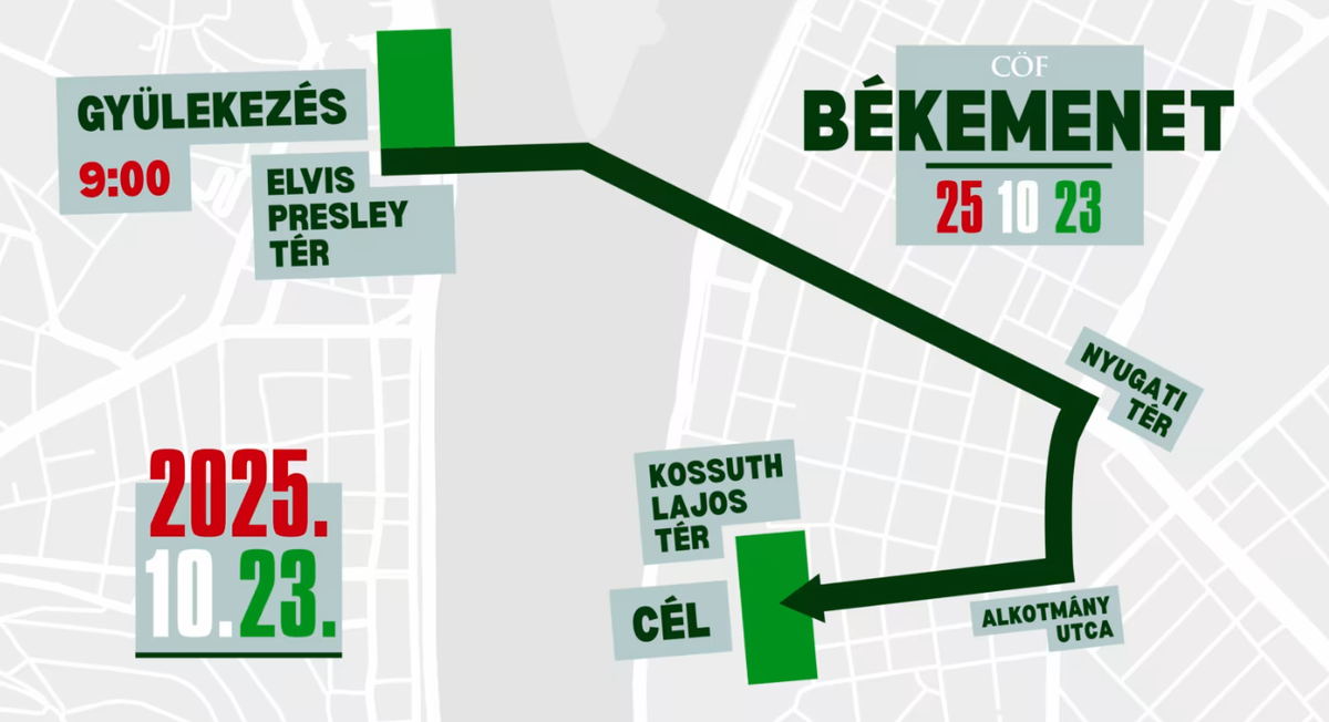 Történelmi a tét: szuverenitás vagy gyarmati sors. Október 23-án 9 órától gyülekezés a budapesti Elvis Presley téren, ahonnan a békemenet résztvevői Orbán Viktor beszédére vonulnak a Kossuth térre – írja a Magyar Nemzet.