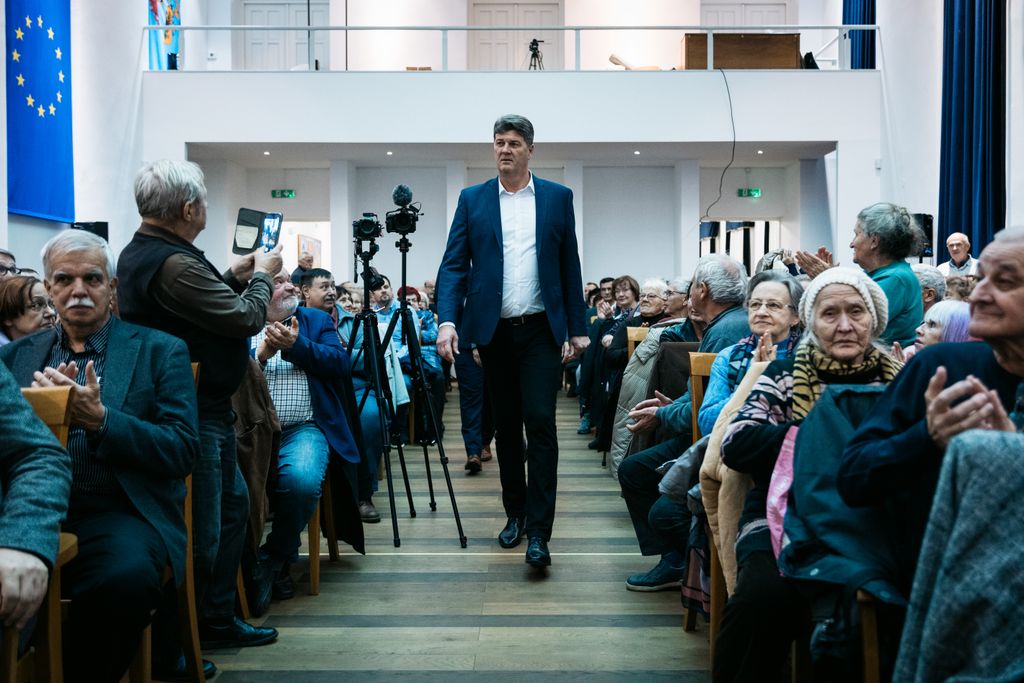 Nagy taps köszöntötte a terembe lépő Gulyás Gergelyt, akivel Mihálffy Béla, Szeged és a Homokhátság kormánypárti országgyűlési képviselője beszélgetett. A szegedi politikus köszöntőjében felidézte, hogy a miniszter a kezdetektől fogva segíti és támogatja a Pálffy-díj átadását, ami a szegedi polgári közösség legjelentősebb elismerése. Mihálffy Béla hangsúlyozta, hogy