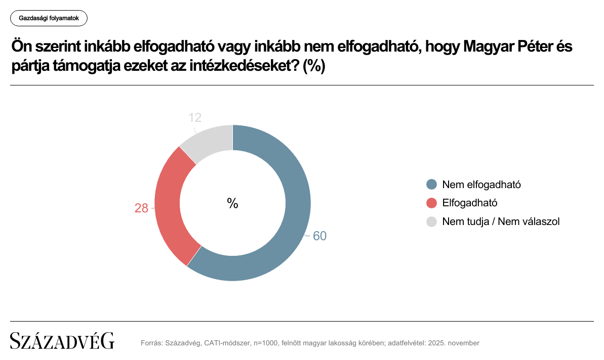 A felmérés alapján világos az is, hogy a magyarok jelentős része nemcsak magát az intézkedést tartja elfogadhatatlannak, hanem a Tisza Párt hozzáállását is. A válaszadók 60 százaléka kifejezetten elutasítja, hogy Magyar Péter pártja Brüsszel mellé állt az ügyben.