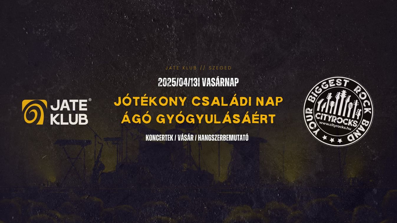 A JATE Klub és a CityRocks közössége összefogott, hogy zenével és szeretettel segítsen egy kisfiúnak. Április 13-án, vasárnap jótékony családi napot rendeznek a szegedi JATE Klubban, hogy támogassák a leukémiával küzdő 10 hónapos Ágó gyógyulását.