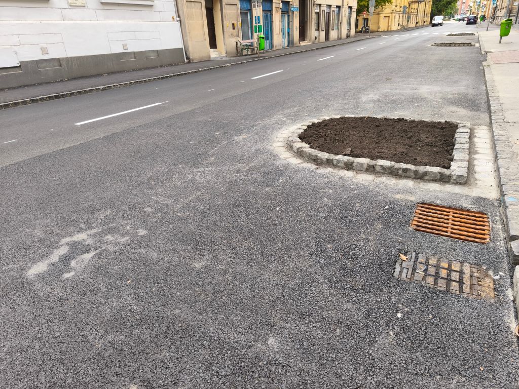Kilenc fatükröt alakítanak ki a Dózsa utcában, aminek célja, hogy növeljék a természetes árnyék felületét és csökkentsék a belvárosi hőszigethatást.