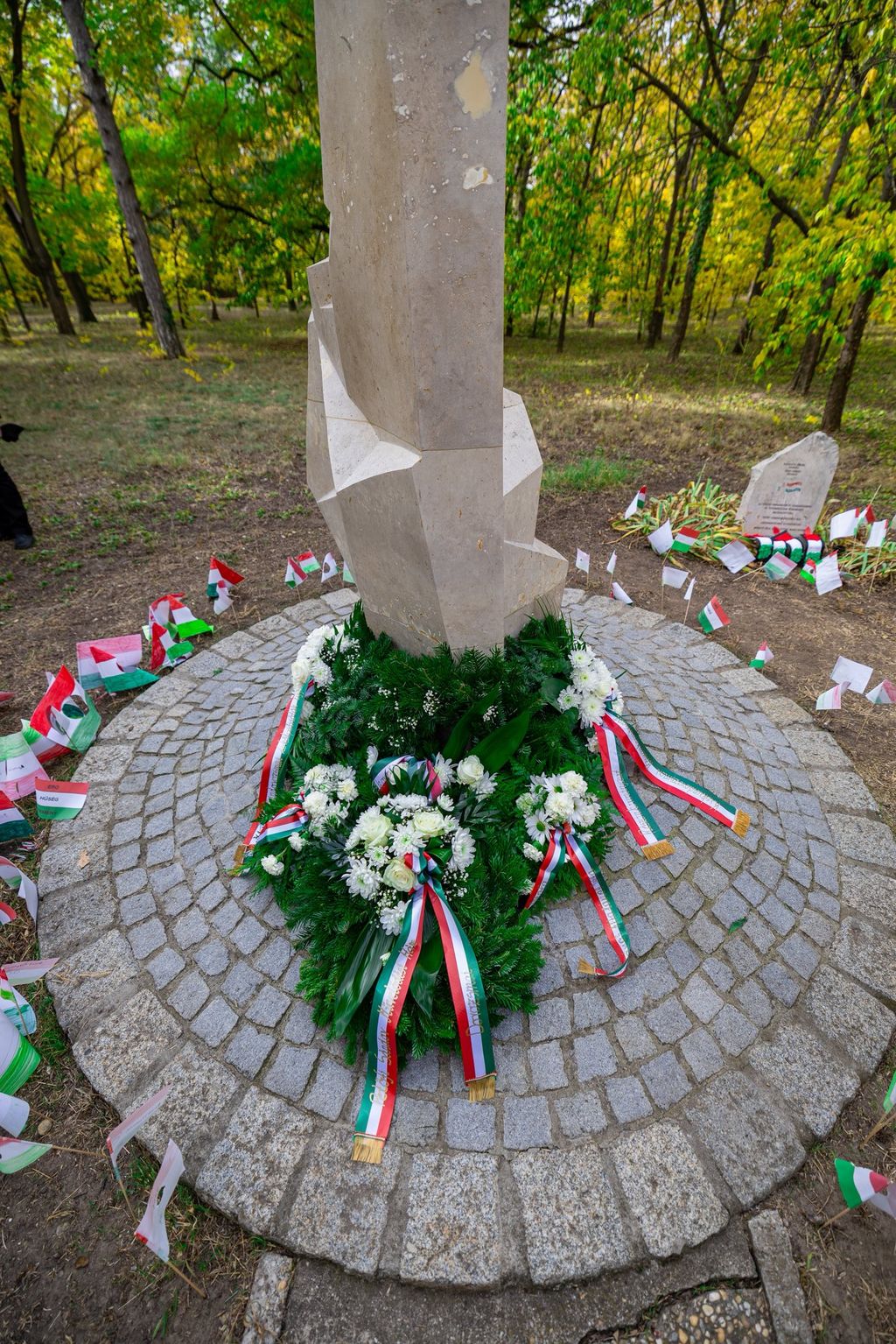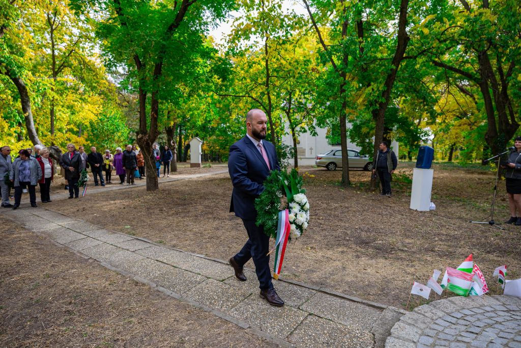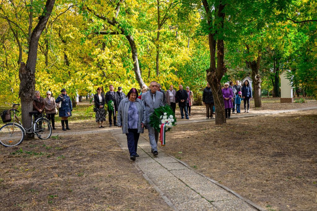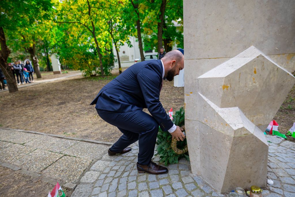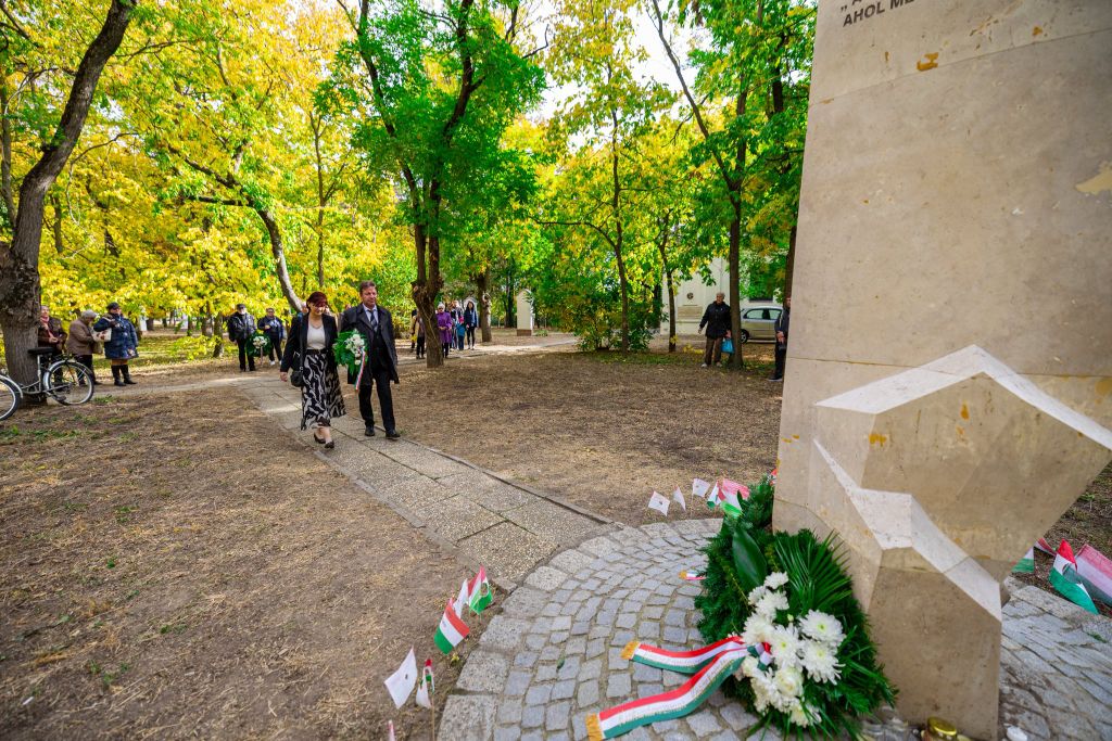 A rendezvény végén a résztvevők közösen helyezték el a koszorúkat a Hősök Ligetében, az emlékműnél, méltóságteljes csendben emlékezve a forradalom hőseire. Ruzsa Roland beszédében a béke, az emberi méltóság és az összefogás fontosságát hangsúlyozta: