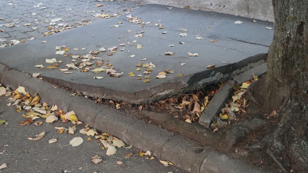 Amikor néhány napja a bejáráson voltunk, és készítettük a fotókat, akkor az utca egyik lakója odajött hozzánk, és megjegyezte, hogy nem csak az úton, de a járdán is "van ám mutogatni való". Elmesélte a hölgy, hogy a feltöredezett, felpúposodott járda is balesetveszélyes.
