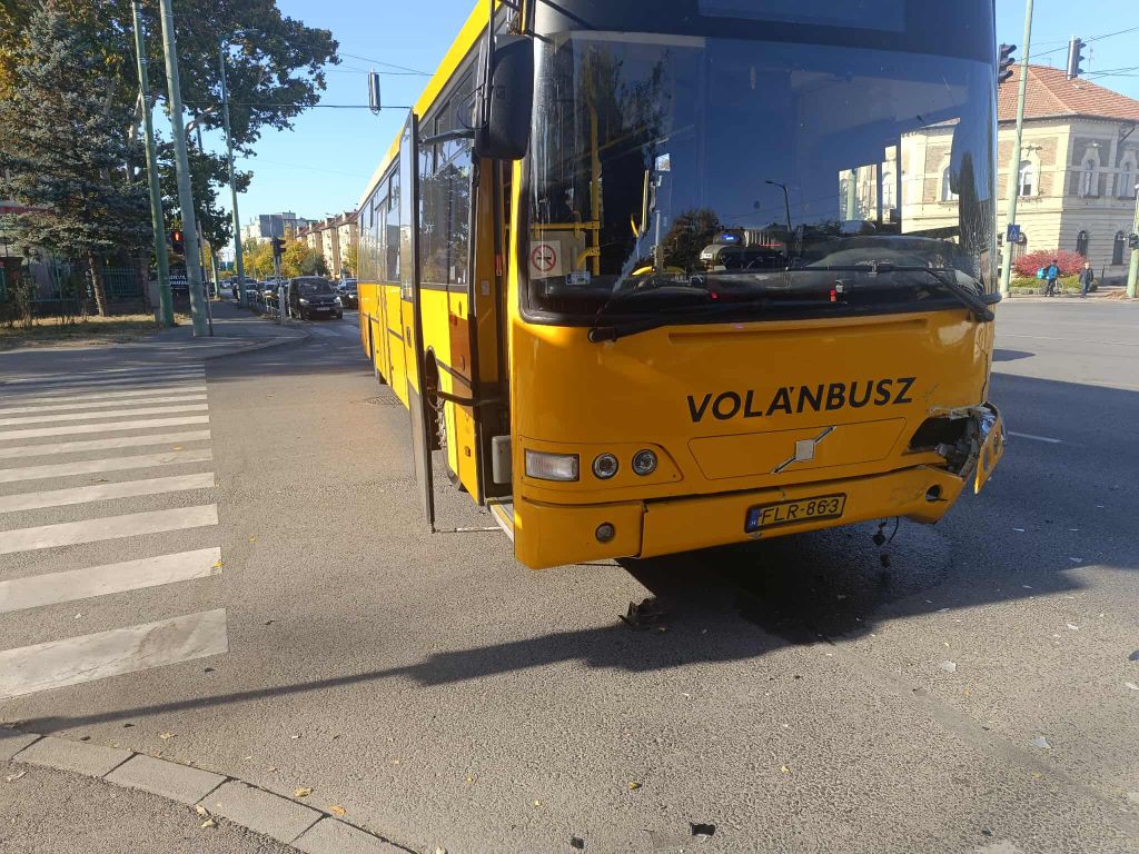 A rendelkezésre álló információk szerint egy fehér színű személyautó és a Volánbusz egyik menetrend szerinti járata karambolozott. A baleset során a személyautó jobb első kereke csapódott a busznak. Mivel az ütközés a csomópont közepén történt, a két jármű megakadályozza a zavartalan közlekedést a forgalmas kereszteződésben. A rendőri egységek és a mentők gyorsan a helyszínre érkeztek. Halálos sérülésre utaló jel nem merült fel.