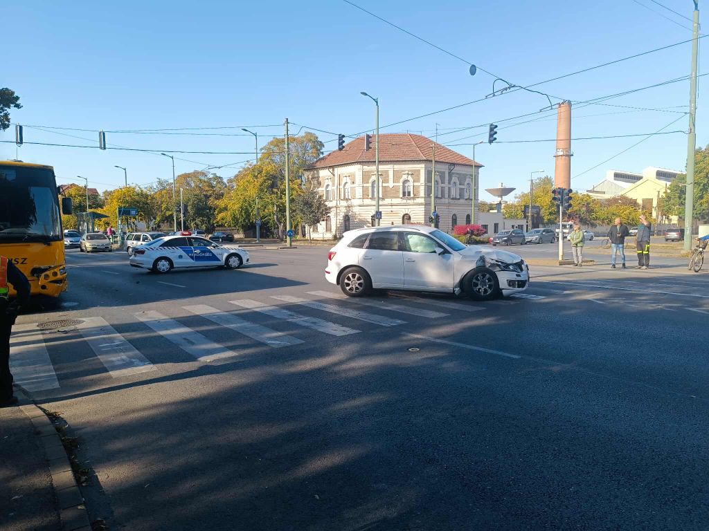 Szegeden a Kossuth Lajos sugárút és a Damjanich utca kereszteződésében a délutáni órákban közlekedési baleset történt, amelyben egy személyautó és egy helyi buszjárat ütközött. Bár a rendőrség azonnal megkezdte a helyszínelést, a forgalom jelentősen lelassult az útvonalon.