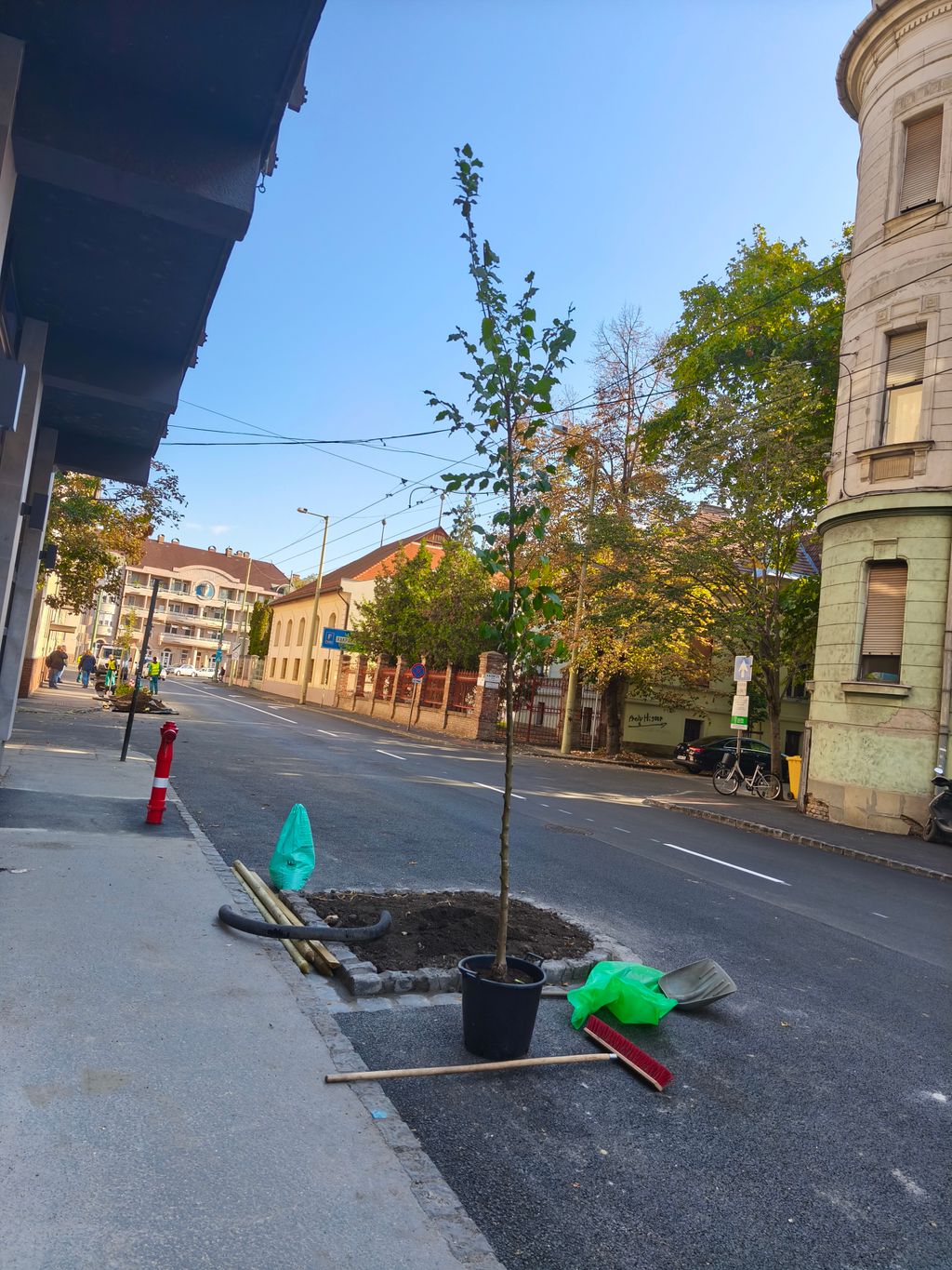 Ennek döntésnek a legnagyobb negatívuma, hogy kevesebb parkoló áll majd rendelkezésre a jövőben. Szerda reggel elültették a tíz fát az út mentén: