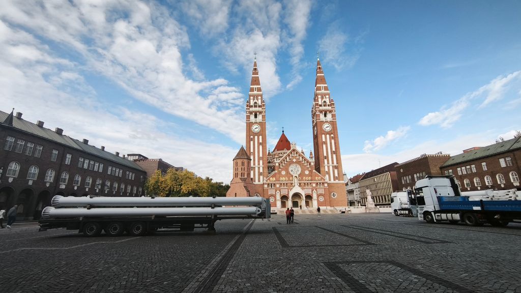 Az 50 méter magas óriáskerék elemeit szállító kamionok már megérkeztek Szegedre, az összeszerelésnek neki is láttak. A tervek szerint október 31-én, pénteken indulhat útjára.