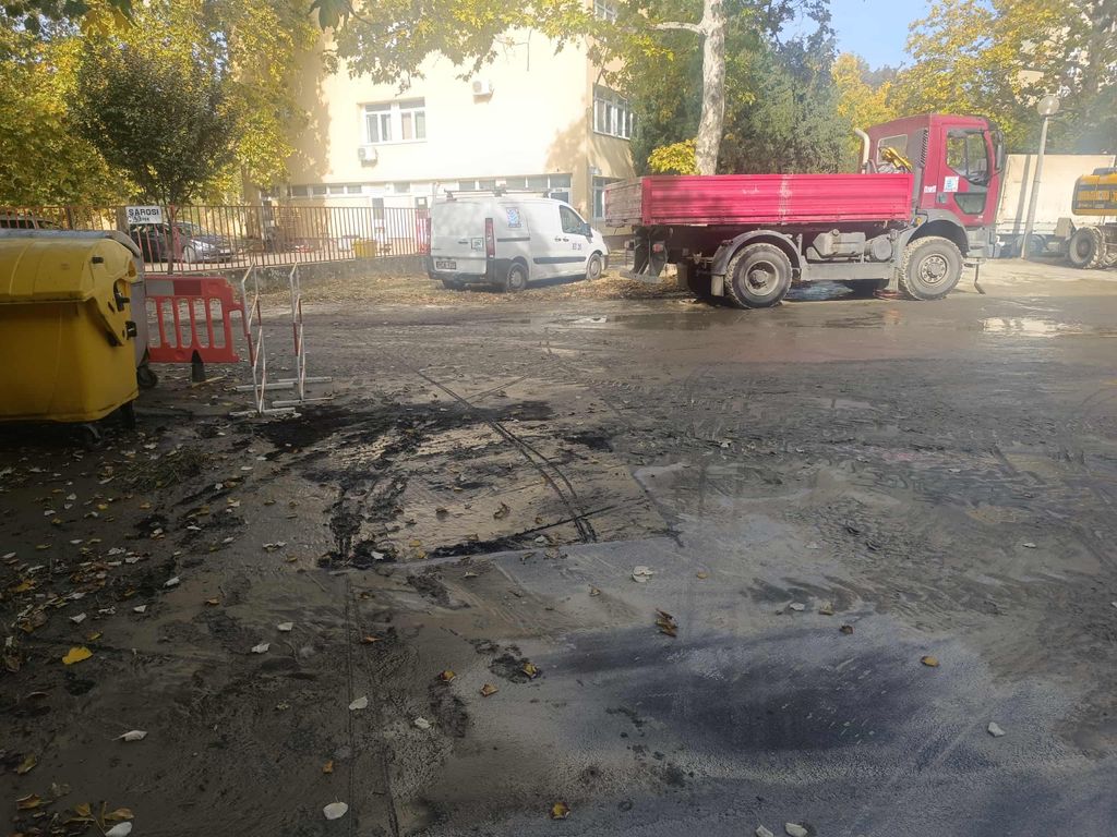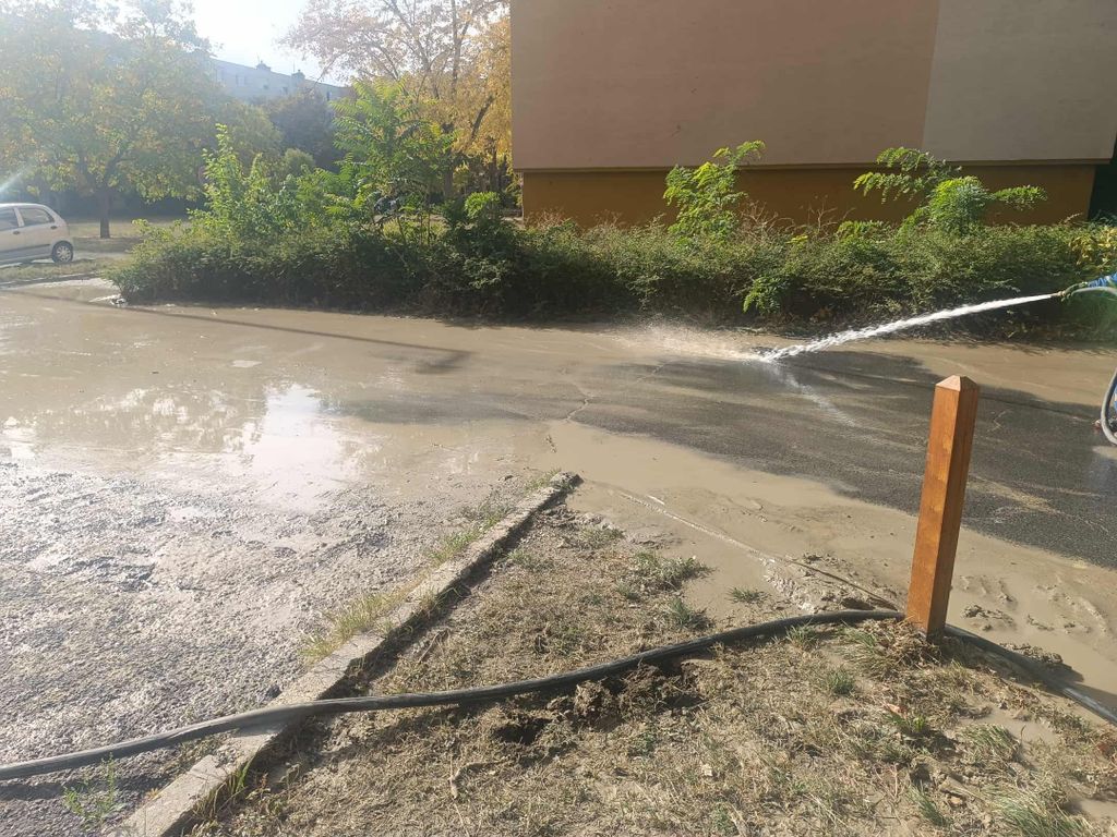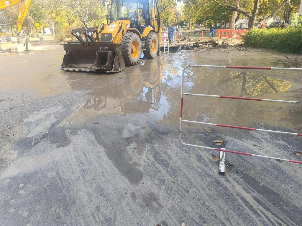 Szerda reggelre a vízellátást helyreállították ugyan, de a végleges helyreállítási munkálatok délelőtt is javában folytak. A helyszínen több munkagép dolgozott, méretes munkagödör árulkodott a hiba súlyosságáról, és a sárral borított aszfalt is mutatta, mekkora nyomással tört fel a víz a föld alól. Az útburkolat és a környező zöldterületek is károsodtak. A biciklitárolók körül is sártenger keletkezett, egyes járókelők elmondása szerint gyakorlatilag járhatatlanná vált a környék a keddi éjszaka folyamán.