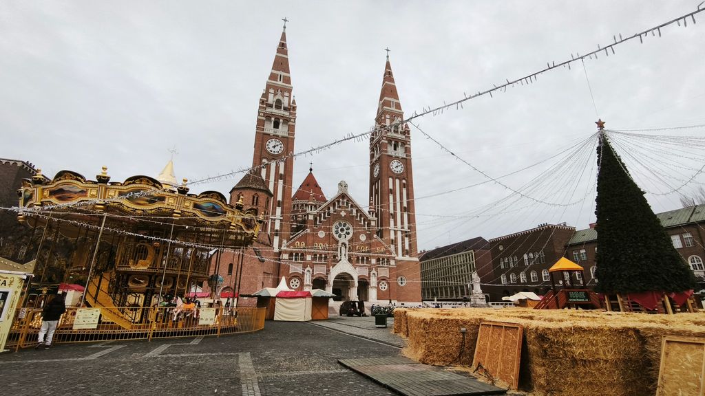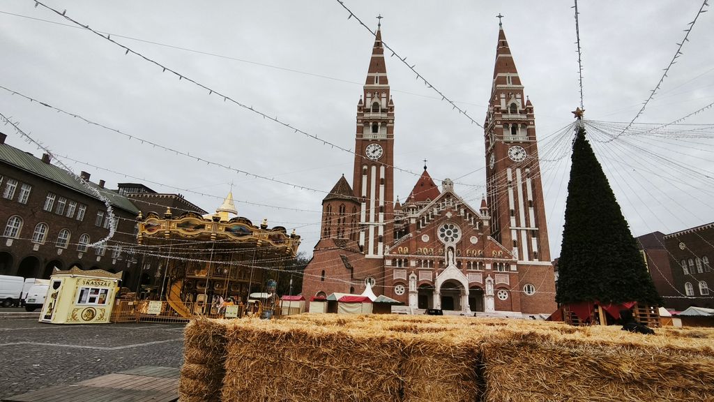 Pénteken veszi kezdetét a Szegedi Karácsonyi Hetek programsorozata, Szeged már lassan teljesen ünnepi hangulatba borult. Előző héten megérkezett a város karácsonyfája a Klauzál térre, kedden a fényszarvas is elfoglalja a helyét a Dugonics téren. A Dóm téren az óriáskerék már október végén elindult, valamint a kétszintes körhinta is forog. Ahogy ma délután szétnéztünk a téren, láthattuk, hogy az adventi koszorú, a karácsonyfa, a szalmabála labirintus és az ünnepi fények már a helyükön, továbbá a maradék teret hamarosan elfoglalják az árusok bódéi.
