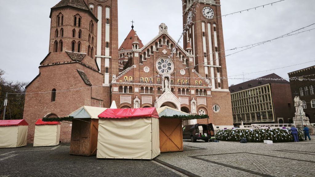 Egyelőre még üresnek tűnhet a Dóm tér, ugyanis még nem szerelték össze a karácsonyi vásárhoz tartozó összes bódét.