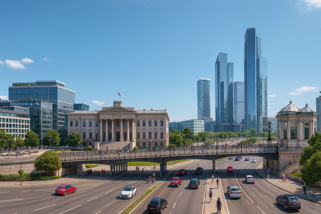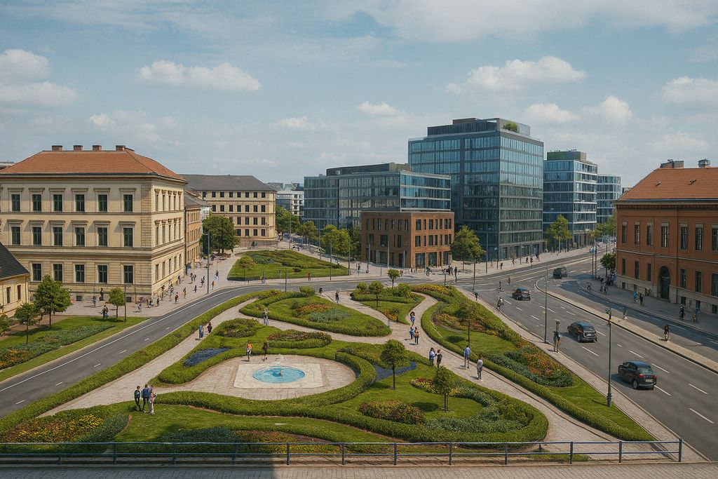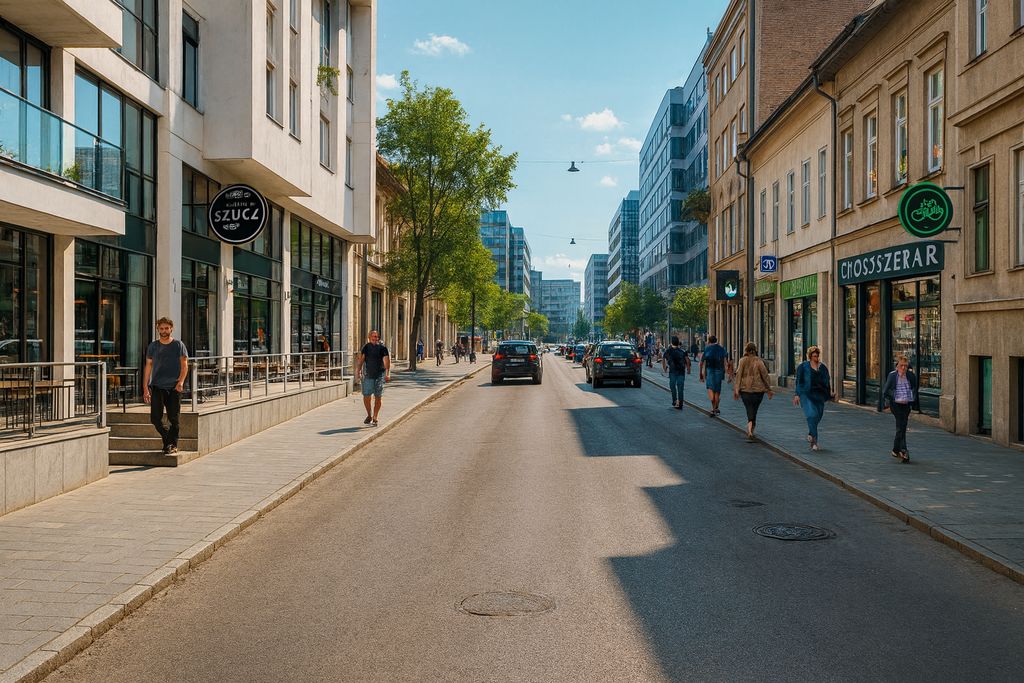 Különösen érdekes, ahogy az AI megőrizte a város alapvető karakterjegyeit: a széles sugárutakat, a terek központi szerepét, ugyanakkor ezeket modern kontextusba helyezte.
