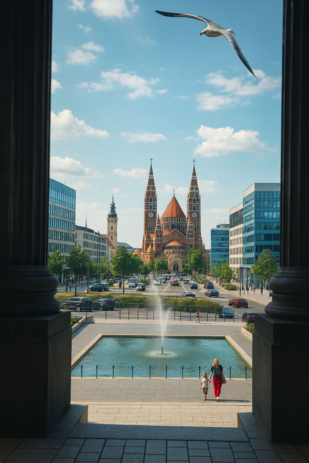 Szeged valós 21. századi képe természetesen más lett – kevesebb felhőkarcolóval, kicsivel kevesebb megőrzött történelmi értékkel. Az AI víziója mégis értékes gondolatkísérlet: