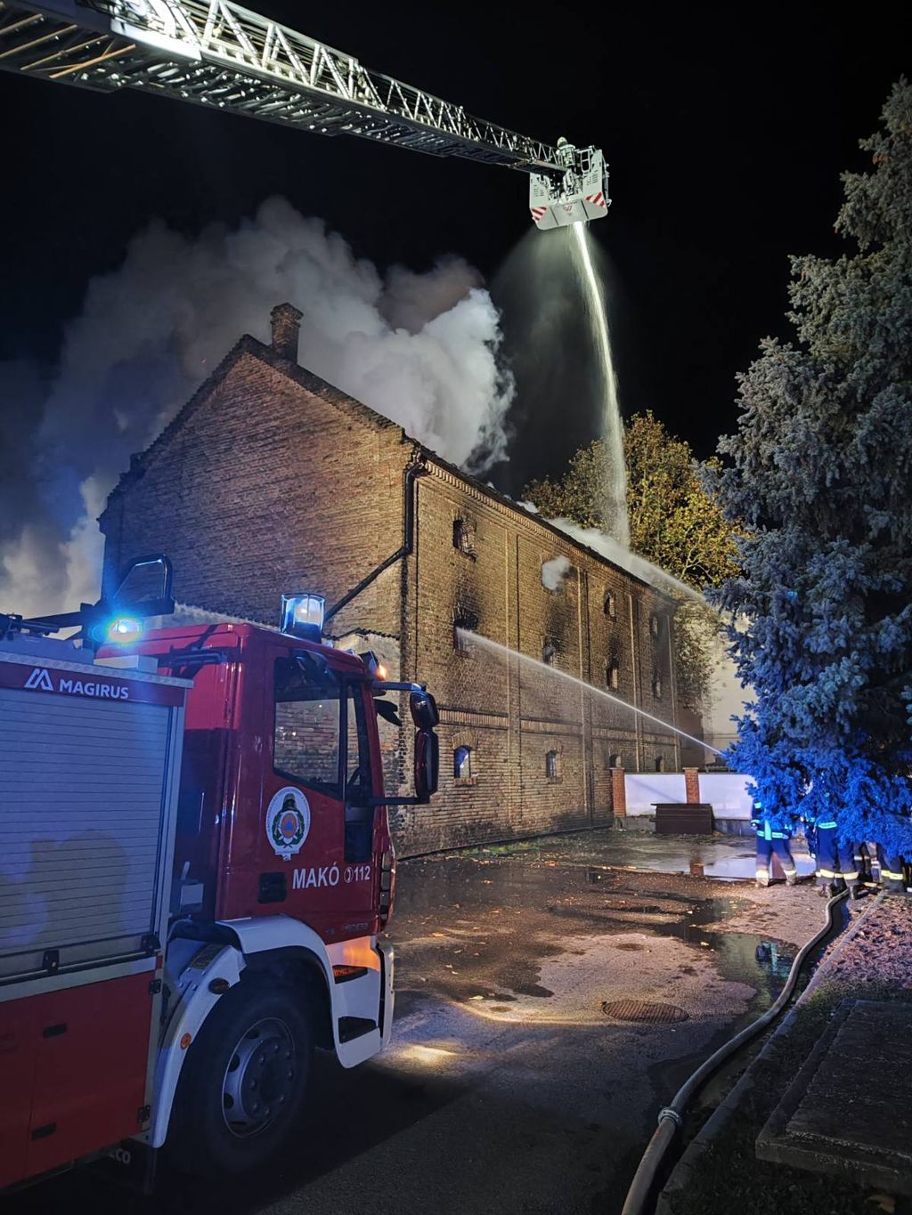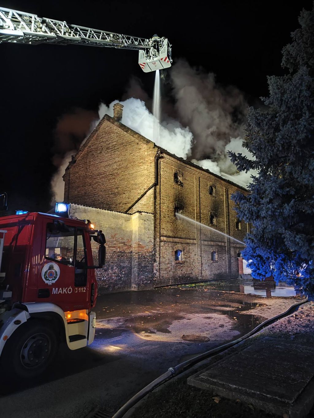 Péntek hajnalban hatalmas tűz pusztított Makó belvárosában egy háromszintes épületben. A lángok több tíz méter magasra emelkedtek, és teljesen ellepték a raktárat. A helyszínre öt városból érkezett tizenegy hivatásos egység, összesen negyvenöt tűzoltó, akik nyolc vízsugárral dolgoztak a tűz megfékezésén. A beavatkozásnak köszönhetően a környező épületek nem sérültek meg.