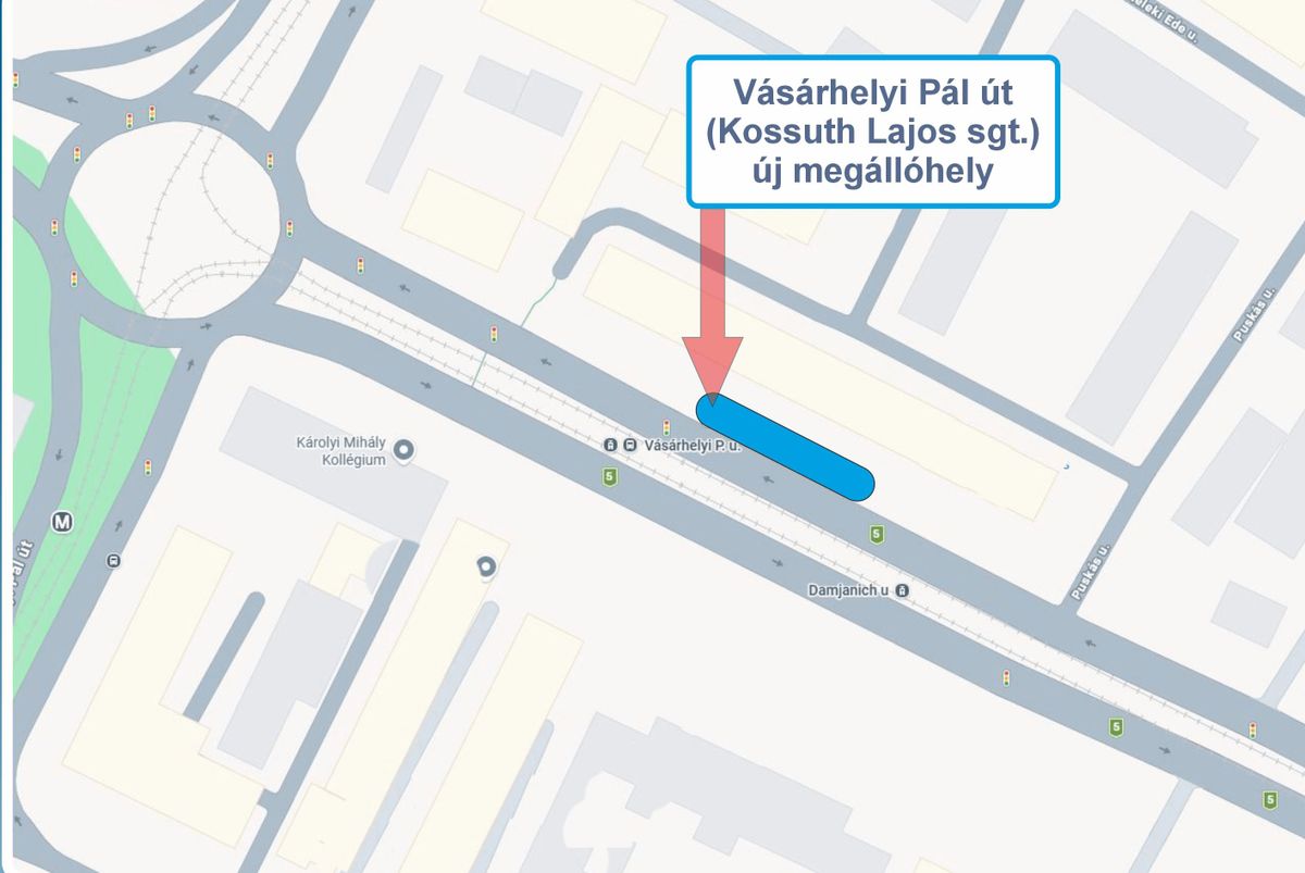 Az SZKT arról tájékoztatott, hogy december 1-től az elkészült új megállóhely használatba vehető a Kossuth Lajos sugárúton, a Vásárhelyi Pál út városból kivezető irányában.