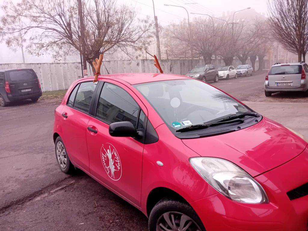 A Mikulás szánja idén nem a levegőben, hanem a szegedi utcákon száguld – egy piros Toyota formájában. Az ünnepi hangulatot hozó kisautót kreatívan feldíszítették: a hűtőrácson ott díszeleg Rudolf piros orra, az ajtók tetejéről pedig agancsok emelkednek ki, mintha csak a híres karácsonyi rénszarvas elevenedett volna meg négy keréken.
