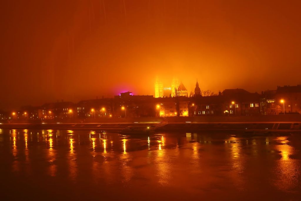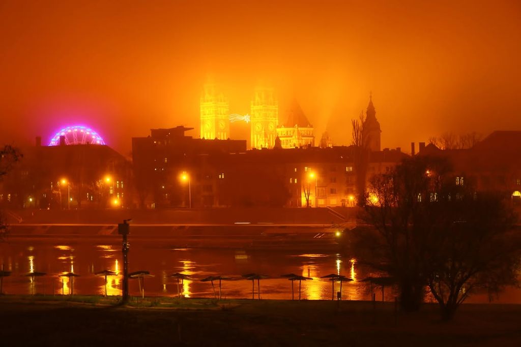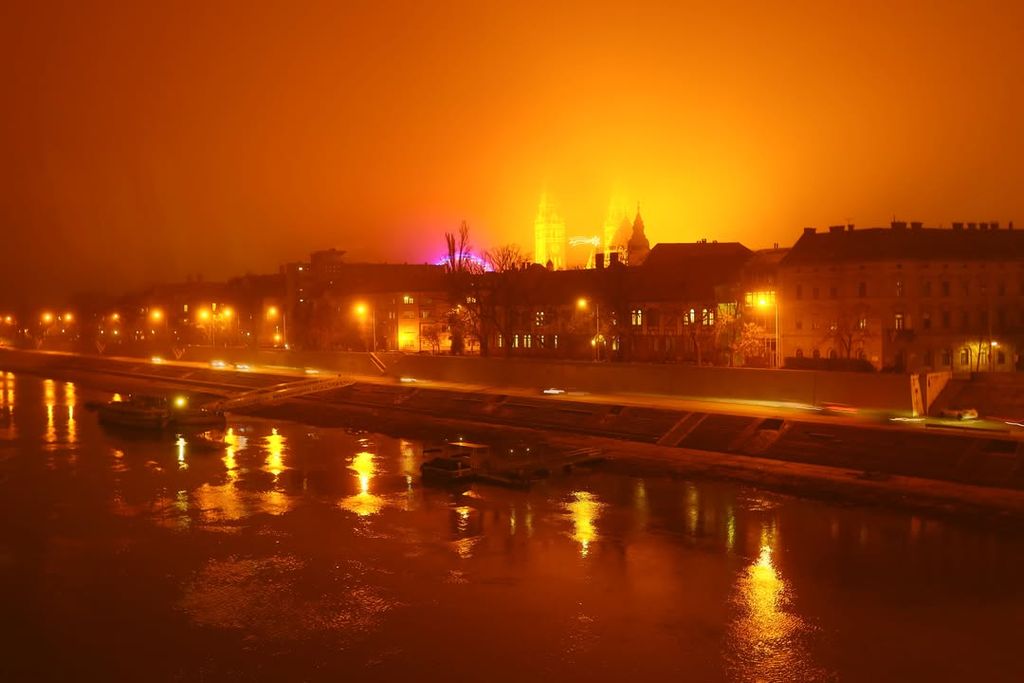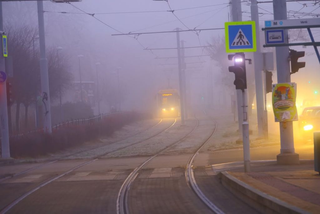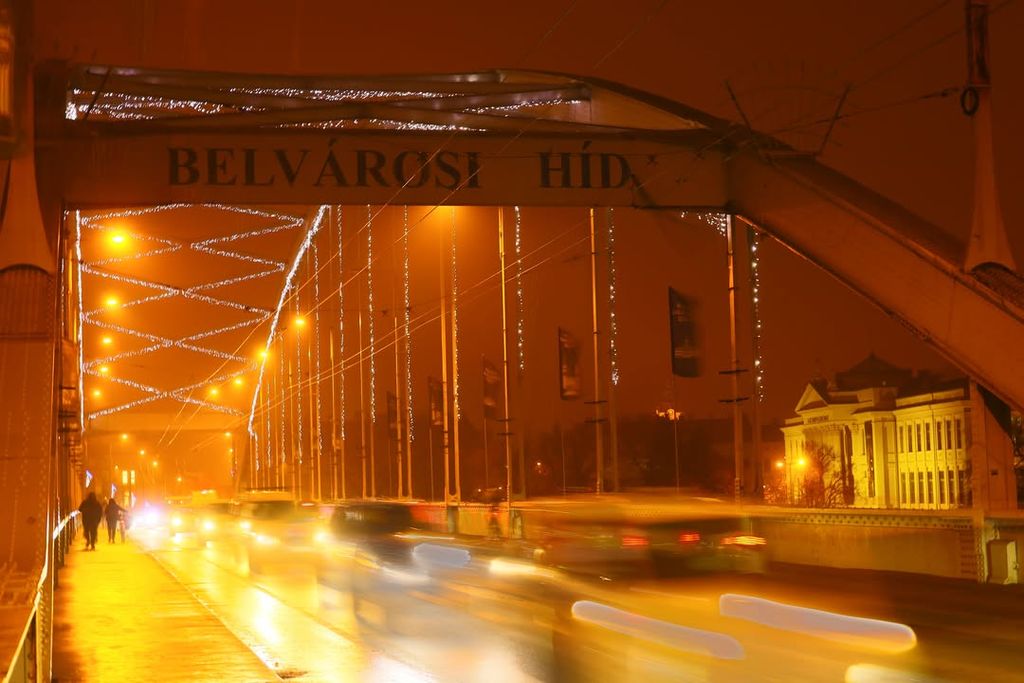 A ködös hetek után végre megmutatta magát Szeged egy másik arcával. A reggeli fagy csendes nyomot hagyott a városon: a Tisza felett tompán visszaverődő fények, a hidak narancssárgába hajló lámpasora és a párába burkolózó villamosvágányok mind ugyanazt a visszafogott, téli nyugalmat sugározták. A megszokott zaj mintha halkabb lett volna, az utcákon lassabban mozdult minden.